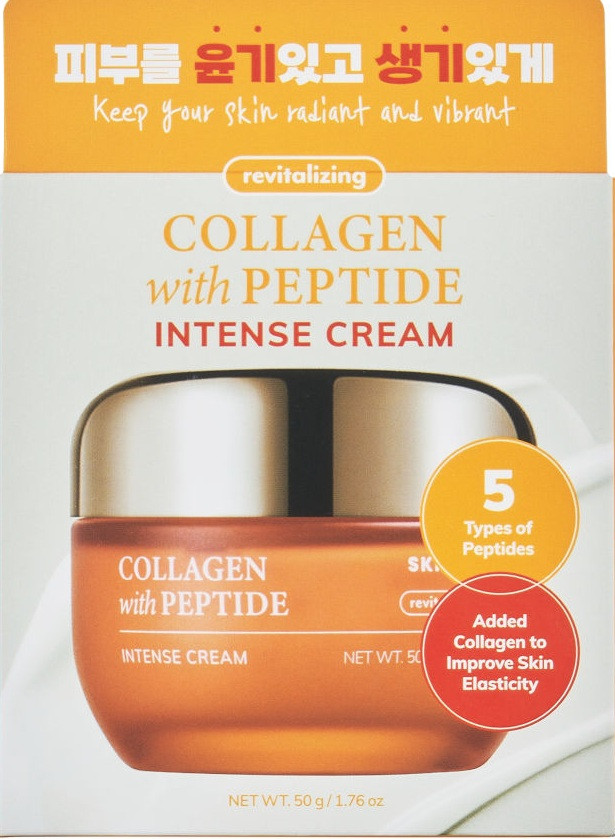 SKIN627 COLLAGEN s PEPTIDEM Intense Cream je specializovaný krém proti stárnutí, který kombinuje sílu hydrolyzovaného kolagenu a pokročilého komplexu 5 peptidů. Toto inovativní složení je navrženo tak, aby účinně redukovalo známky stárnutí, stimulovalo produkci kolagenu a zlepšilo elasticitu pokožky. Bohatý krém proti stárnutí poskytuje intenzivní výživu a dlouhodobou hydrataci a zároveň podporuje přirozené regenerační procesy pokožky. Pleťový krém s kolagenem a peptidy je obzvláště doporučován pro zralou pleť, která vykazuje známky stárnutí, se ztrátou pevnosti a elasticity.