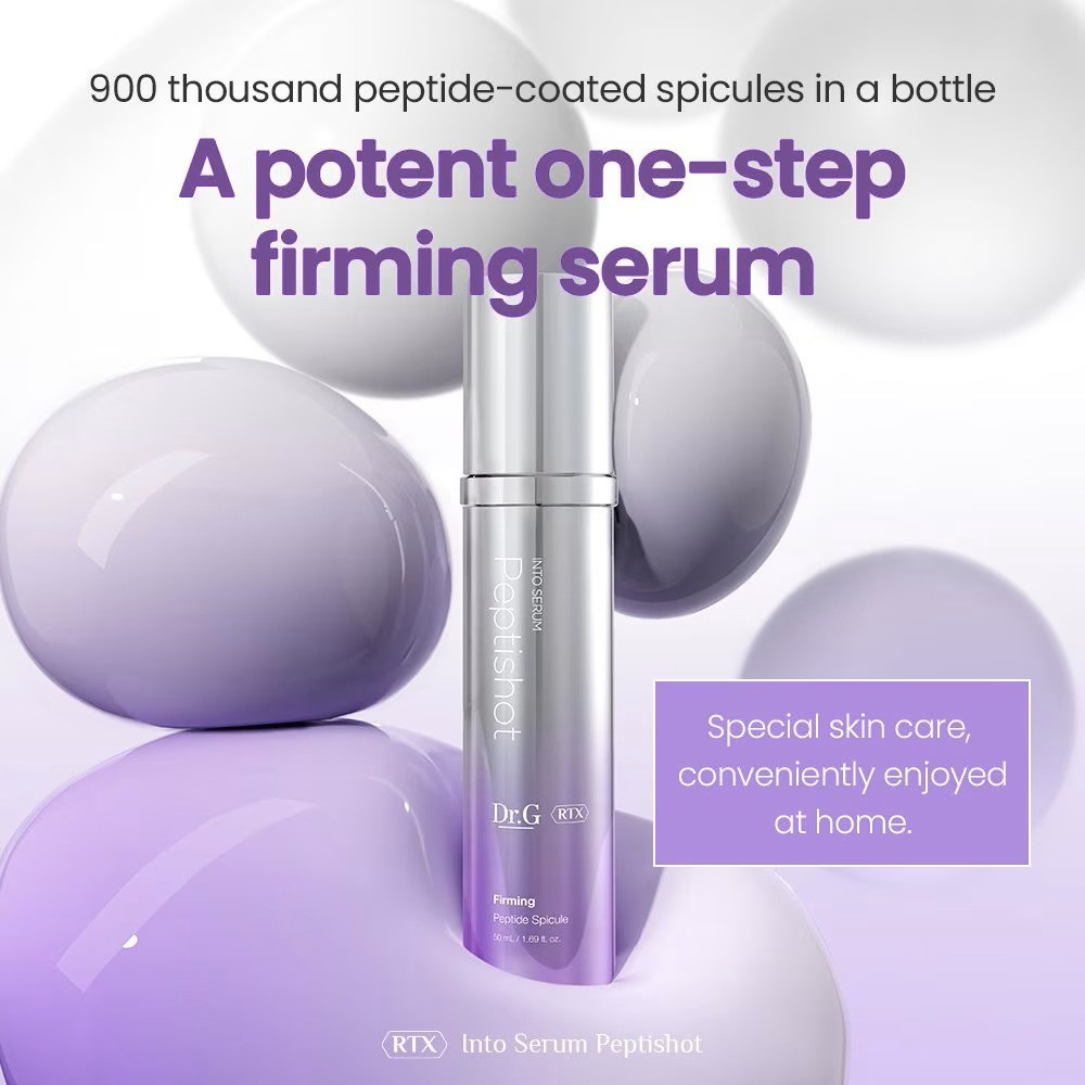 Dr.G RTX Into Serum Peptishot je vysoce účinné liftingové sérum, které využívá nejpokročilejší dermatologickou technologii Pepti-Aero Spicule™ – ultra jemné mikrojehličky získané z rafinované mořské houby. Ty během 3 sekund proniknou do pleti a okamžitě aktivují buněčnou obnovu, zvyšují vstřebávání aktivních látek a viditelně zlepšují elasticitu.